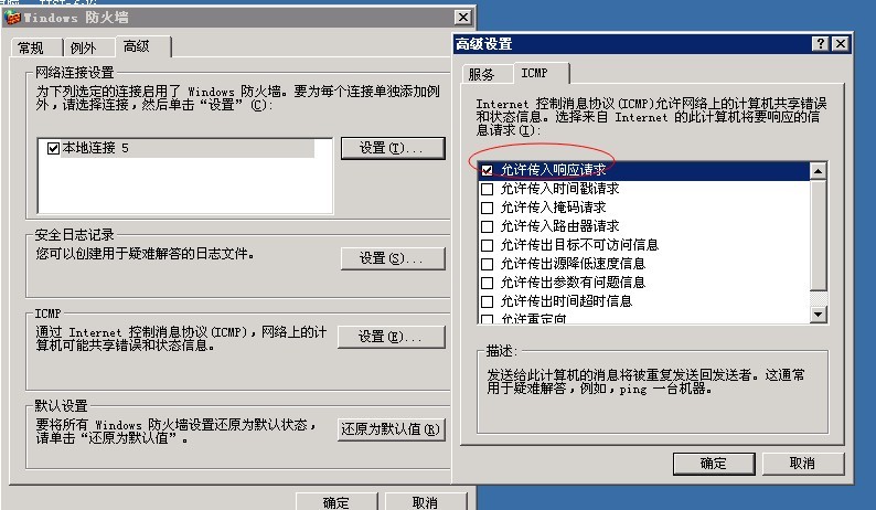 | 您的当前位置:首页 --> Windows教程 --> windows2003 系统开启防火墙后允许ping的方法 |